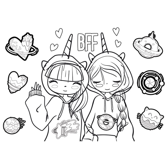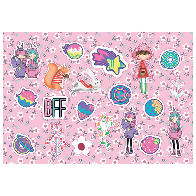 dimenzija: 23× 33 cm; 40 L; sadrži: naljepnice, šablone i 2 bojanke; idealan za beskonačne sate kreativnih aktivnosti u školi i kod kuće Best Friends Forever – Hello Rain Pakiranje: 1/12