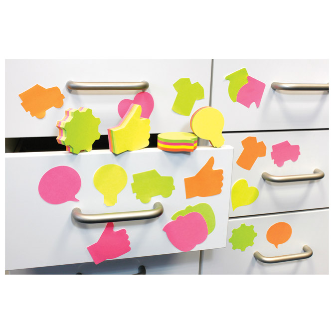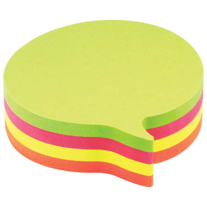 200 listova; mogućnost višestrukog premještanja; ljepilo je bez otapala izrađeno na bazi vode; neon boje: narančasta, roza, zelena i žuta; blister 70× 70 mm / oblak Pakiranje: 1/10