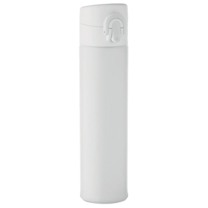 Dvoslojna boca za piće od recikliranog nehrđajućeg čelika (90% recikliranog nehrđajućeg čelika i 10% nehrđajućeg čelika) sa sigurnosnom bravom na poklopcu i opcijom otvaranja pritiskom. Ne propušta. Kapacitet: 300 ml.Dim: O5,8X22,7CM Pakiranje: 1/40
