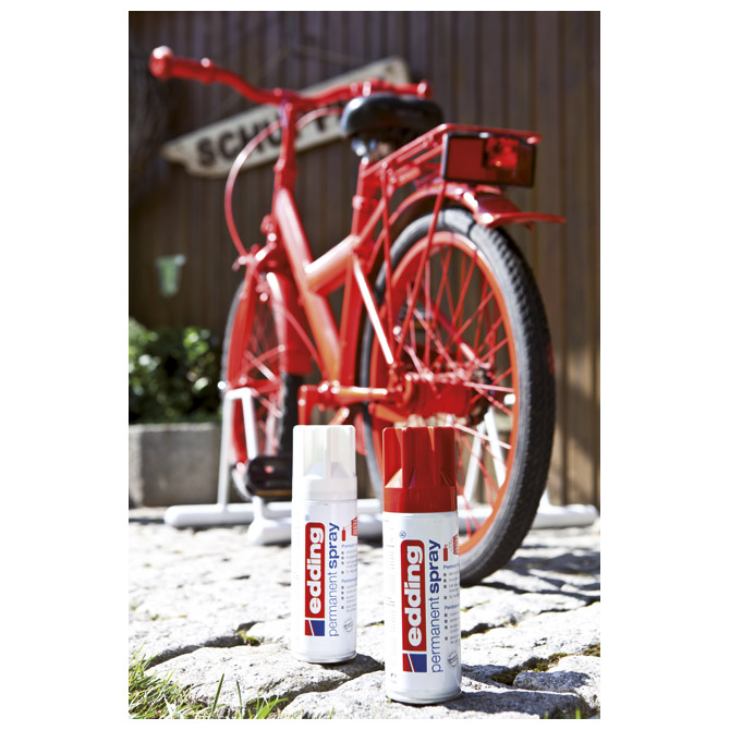 permanentna; za bojanje: papira, kamena, drva, tapeta, tekstila, metala, stakla, keramike i plastike; pogodno za stiropor no potrebno je nanijeti podlogu (primer); brzo se suši; za upotrebu na otvorenim i u zatvorenim prostorima; velika pokrivenost: 200 ml za otprilike 0,70 m2 do 1 m2 površine; potpuno suho za ~30 minuta (za ~1-3 minute dovoljno suho da se prašina ne lijepi); 200 ml Pakiranje: 1/6