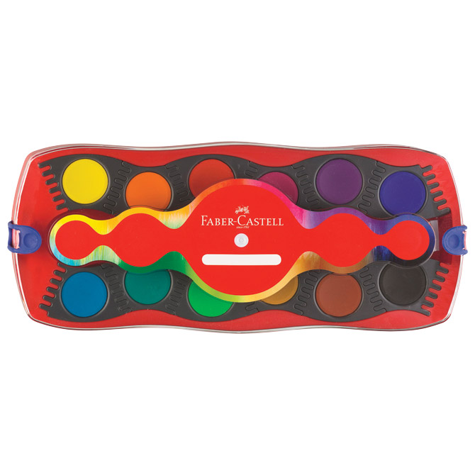 Boja vodena fi 24 mm 12boja+bijela tempera Connector Faber-Castell 125030 crvena kutija