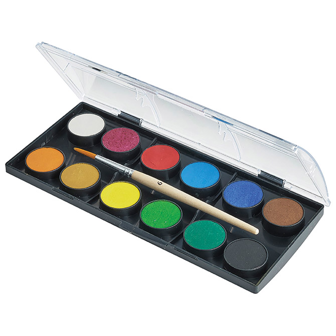 12 boja; s kistom; živopisne boje s visokom neprozirnošću i mogućnošću pokrivanja; miješanjem boja dobije se neograničen broj nijansi boja; PVC kutija uložena u kartonsku kutiju; blister fi 24 mm Pakiranje: 1/6/72