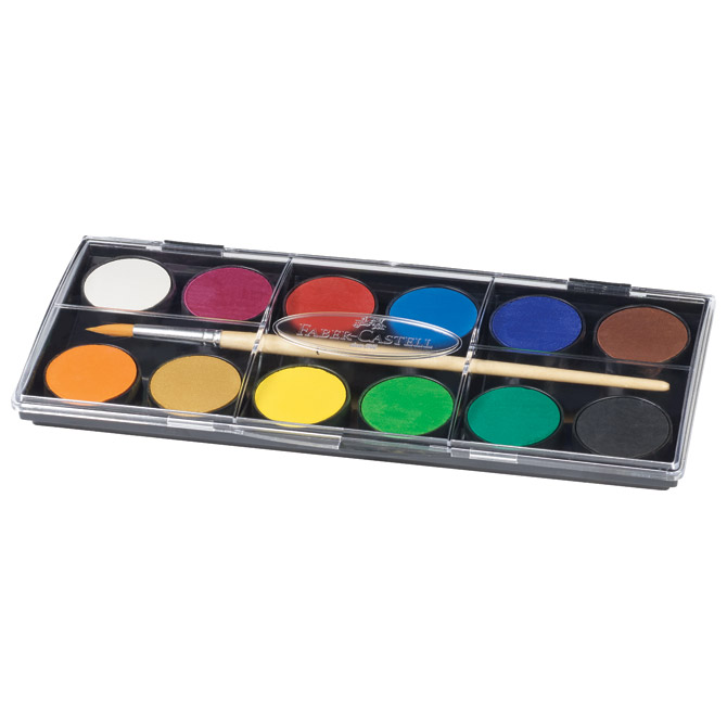Boja vodena fi 30 mm 12boja+kist Faber-Castell 125018 blister