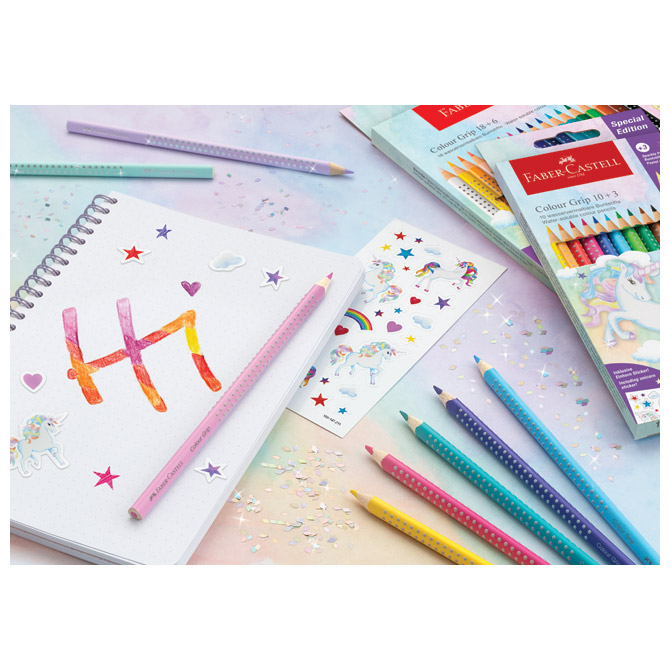 Boje drvene 18boja Grip 2001+6boja drvenih Sparkle pastel Unicorn Faber Castell 201543 blister