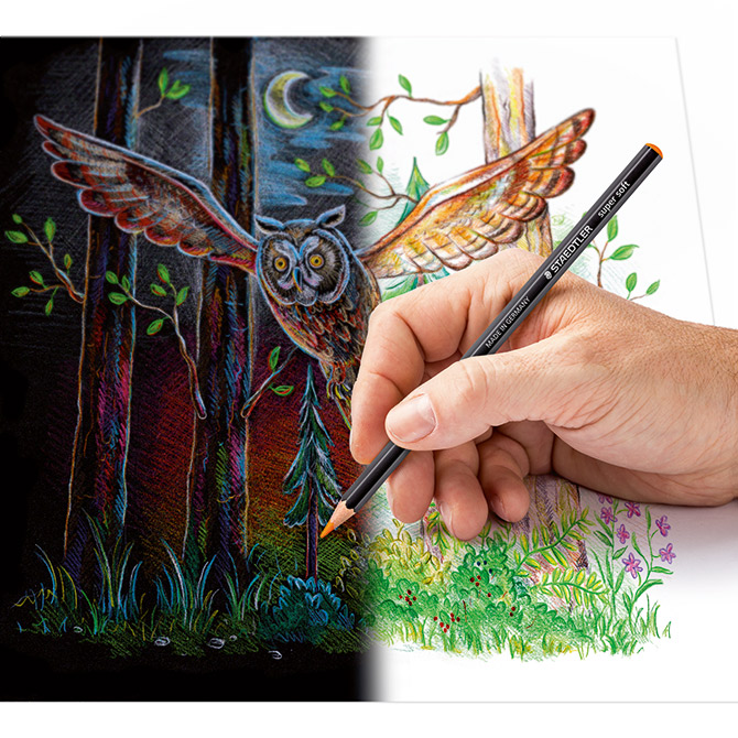 šiljene; šesterokutne; jako mekan vrh za veću pokrivenost površine papira bojanjem; za crtanje na crnom, bijelom i svim papirima u boji; metalna kutija; blister set od 24 boje Pakiranje: 1/5/40