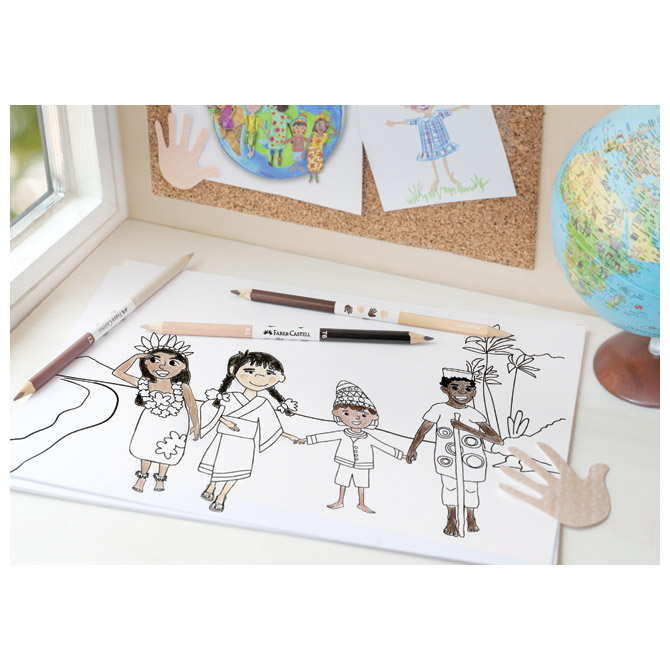 šiljene; trokutaste; ergonomske; posebno je otporna na lomljenje; eko olovka (drvo iz certificiranog održivog šumarstva); boje se jako lako miješaju što omogućuje dobivanje različitih nijansi boja; set od 3 obostrane olovke (6 boja kože); blister Pakiranje: 1/5