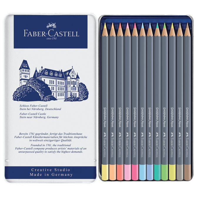 Boje drvene-vodene 12boja metalna kutija Goldfaber Aqua Faber-Castell 114622 pastelne