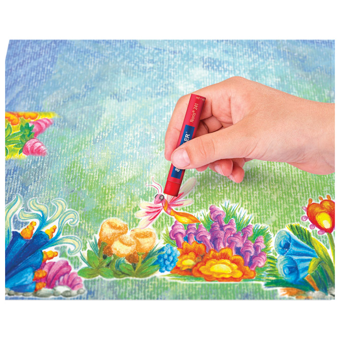 fi: 8 mm; omotane u papir; sa mjestom za napisati ime; posebna formula za manje lomljenja; za upotrebu na svim glatkim površinama; kartonska kutija; set od 16 boja; blister Pakiranje: 1/10/80