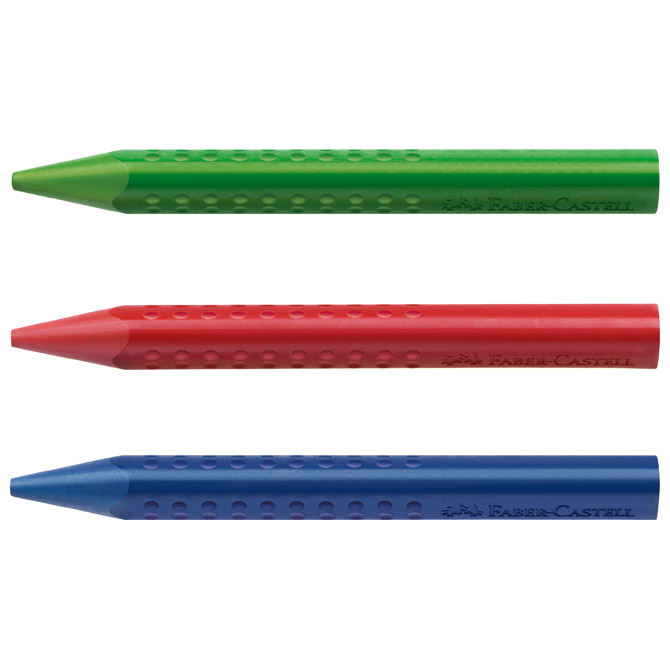 trokutaste; ergonomske; mogu se brisati sa većine vrsta papira; Grip dizajn; ruke ostaju čiste; ne ostavljaju mrlje; ne mrve se; potiču kreativnost i finu motoriku; set od 12 boja; kartonska kutija; blister 9× 89 mm Pakiranje: 1/12/96