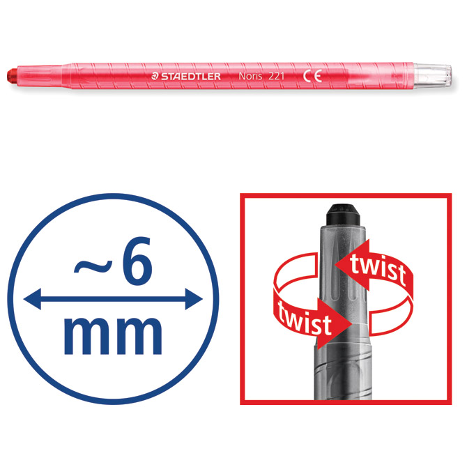 fi: 6 mm; sa PVC zaštitom koja ima rotirajući mehanizam za lakšu upotrebu bojica; posebna formula za manje lomljenja; set od 12 boja; u kartonskoj kutiji; blister Pakiranje: 1/10/100