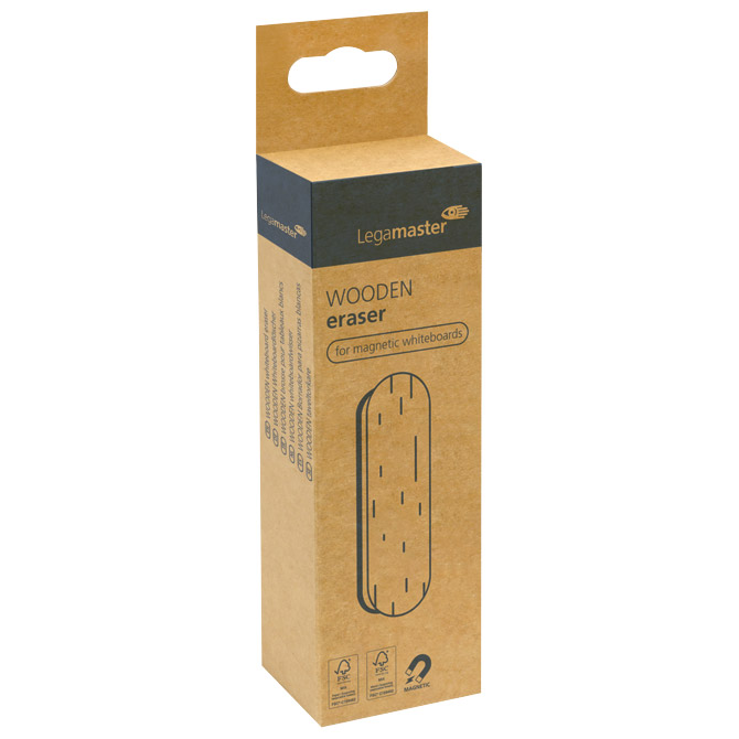 Drveni magnetski brisač s izmjenjivim jastučićem; dimenzije: D 15 x Š 4,5 x V 3 cm; izrađen od bukovog drva “ fagus sylvatica” s lakiranim premazom; može se koristiti na bijelim pločama Legamaster; svaki predmet je jedinstven po boji i izgledu jer je izrađen od prirodnog drva; samo za suhu upotrebu Pakiranje: 1