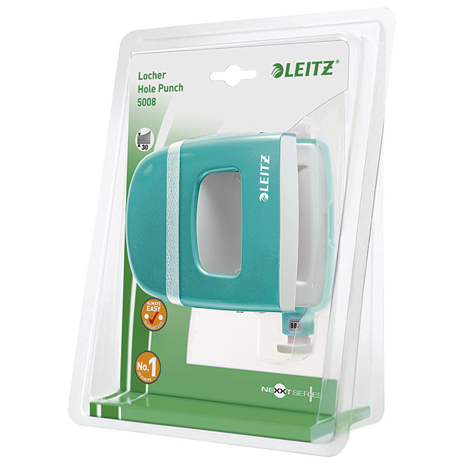 2 rupe; buši do 30 listova ili debljina 3 mm; razmak između rupa je 80 mm; sa spremnikom za otpadni papir u boji bušača; ima plastični graničnik za formate: A4, A5, A6,…; garancija 10 godina; blister Pakiranje: 1/30