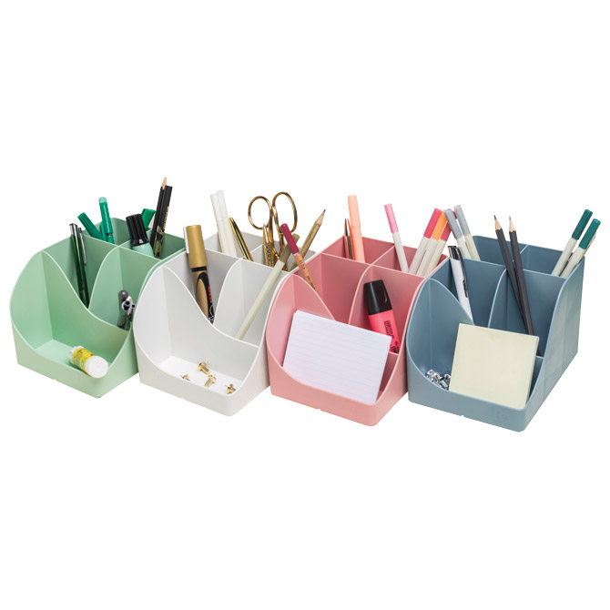 BROJ ODJELJAKA: 5 ASORTIMAN: AutentiK MATERIJAL: PS DIMENZIJE: 160x120x110 mm VRSTA PROIZVODA: Čaša za olovke BOJE: bijela –