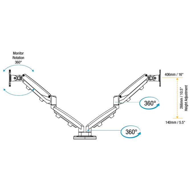 dvije metalne ruke s podesivom visinom,drži monitore svaki do 8 kg Pakiranje: 1