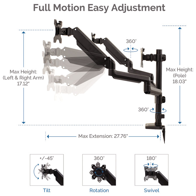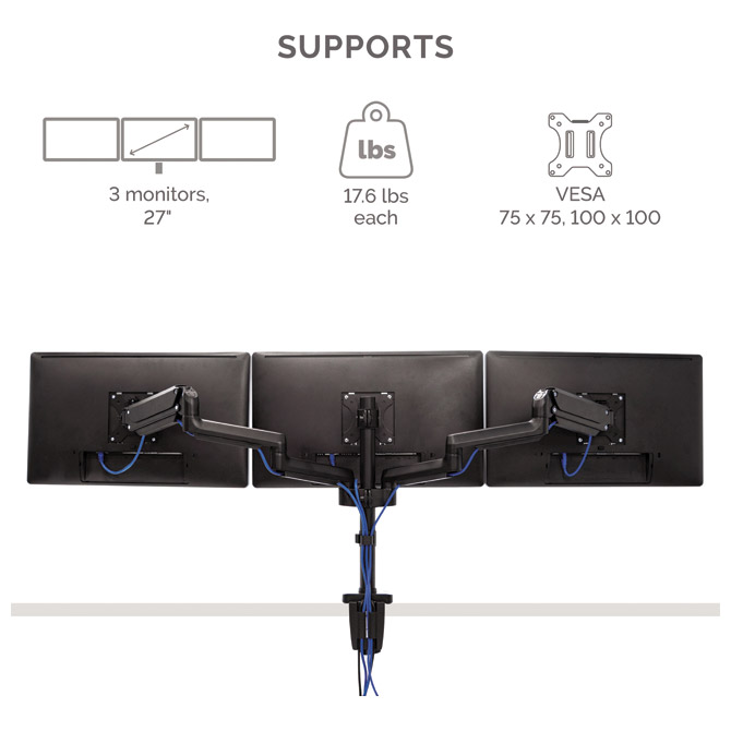 tri metalne ruke s podesivom visinom,drži monitore svaki do 8 kg Pakiranje: 1