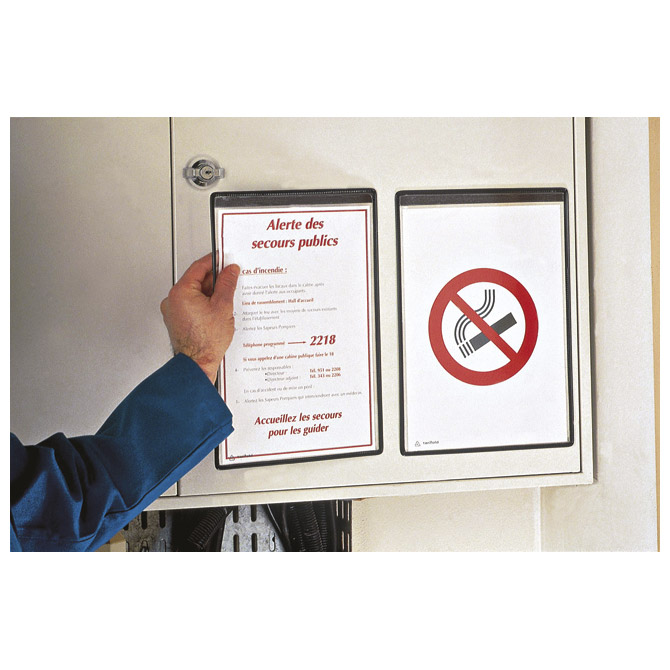format: A4; PVC; magnet na gornjem rubu; za sve metalne površine; boja okvira: crna Pakiranje: 1/5