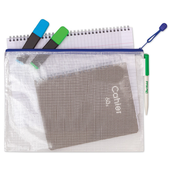 izrađen od iznimno otpornog ojačanog PVC-a; sa zatvaranjem na zip (metalni, zatvarač je konop s plastičnim nastavkom); debljina: 230 mikrona; Tarifold etiketa s vanjske bočne strane može se koristiti kao držač za olovku; idealan za nošenje i zaštitu dokumenata, uzoraka, malih predmeta, uredskog i školskog pribora i sl.; proziran etui s bijelom mrežastom podstavom omogućava pregled i lako prepoznavanje sadržaja A4 / 330× 240 mm / 325x 235 mm Pakiranje: 8