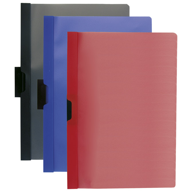 format: A4; PP; drži do 30 listova 80 gramskog papira; prednji dio je proziran, zadnji u boji; metalni klip na sredini Pakiranje: 25