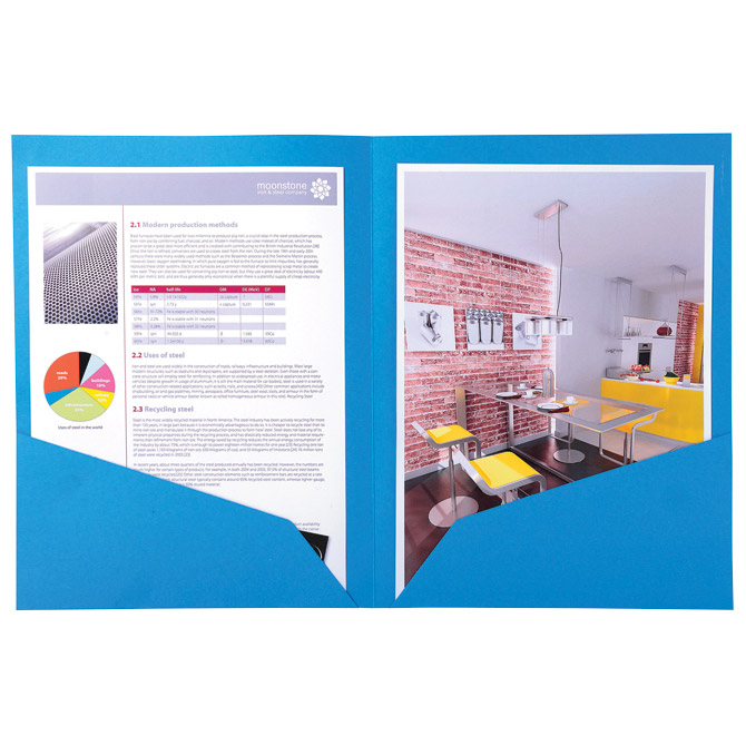 dimenzija: 240×320 mm; čvrst i otporan certificiran PEFC® karton; debljina: 210 g/m2; kapacitet: 80 listova (80gr); dvostruka mapa nudi 2 sigurne mape s desne strane i lijeve strane; bez zatvaranja; set od 25 komada