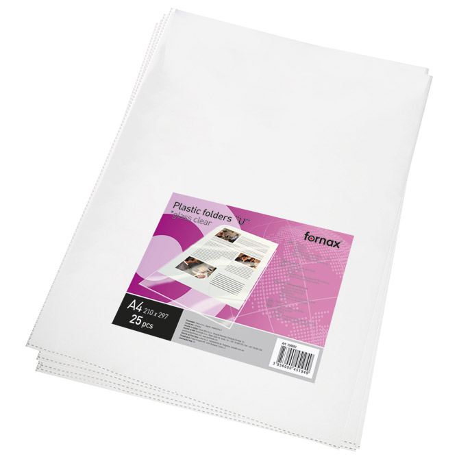 format: A4; unutrašnja dimenzija: 214×332 mm; vanjska dimenzija: 217×335 mm; PP – sjajni; debljina: 90 mikrona; set od 25 komada Pakiranje: 1/48/1920