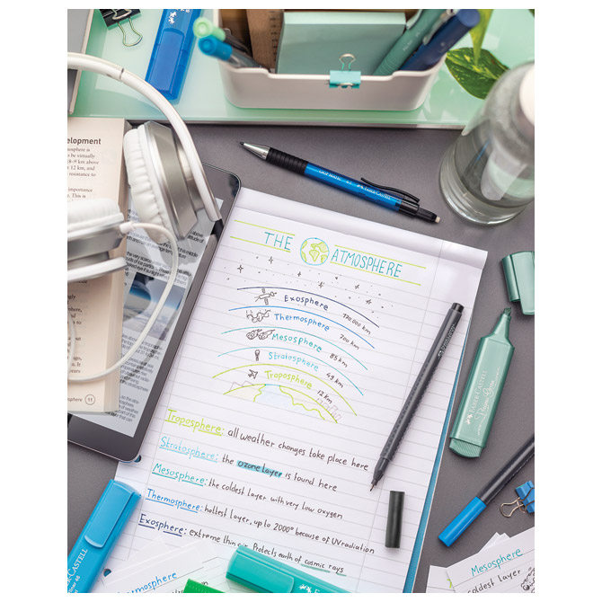 okrugli vrh sa metalnim ojačanjem; širina ispisa: 0,4 mm; ergonomski; trokutasti; s patentiranim gripom za sigurno, ne klizno držanje; živopisne boje; ima tintu na bazi vode i ispire se sa većine tkanina; pogodan je za ravnalo i šablone; idealan za crtanje, skiciranje i pisanje; pogodan za ljevake i dešnjake set od 10 boja; u kartonskoj kutiji; blister Pakiranje: 1/10