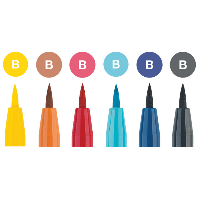 brushpen (vrh kao kist); idealan za početak crtanja Mange; pigmentirana India tinta; izvrsna svjetlosna postojanost; vodootporan i trajan; bez mirisa, bez kiseline, PH neutralan; tinta ne prolazi na drugu stranu papira; kreiran u suradnji sa profesionalnim Manga umjetnicima; u PVC etui-u; blister Pitt Manga Shonen; set od 6 boja: brushpen B (boje: 107, 113, 154, 219, 247 i 274) Pakiranje: 1/5/280