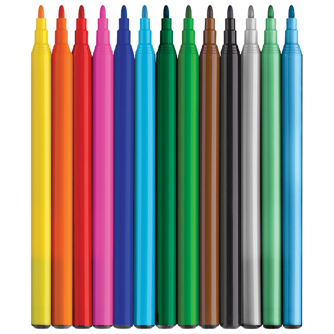 okrugli vrh (iznimno čvrst); živopisne boje; ima tintu na bazi vode; idealne za crtanje i skiciranje na papiru, kartonu, drvu itd.; u kartonskoj kutiji; blister set od 10 boja+3 metalic boje+naljepnice dinosaura Pakiranje: 1/10/120