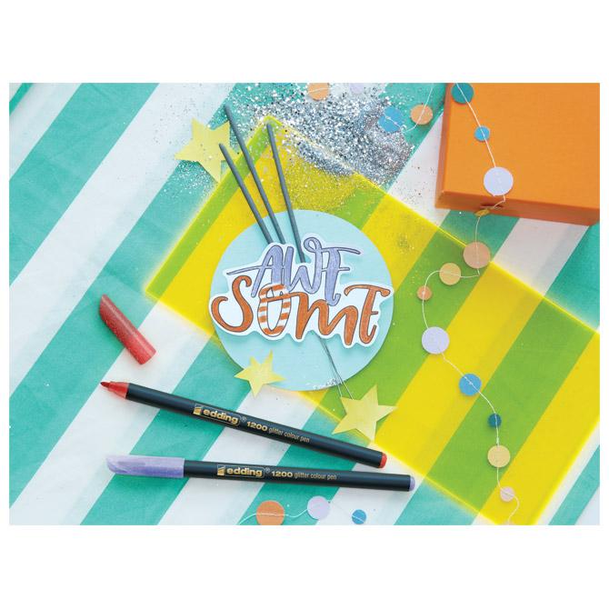 okrugli vrh; širina ispisa: 3 mm; ima tintu na bazi vode; neutralan miris; ne razmazuje se; brzo sušenje; vrh posebno dizajniran za glatko i precizno iskustvo pisanja; set atraktivnih glitter boja za pisanje i ukrašavanje, FSC kartonsko certificirano pakiranje; blister pastel; set 4 od boja Pakiranje: 1/10
