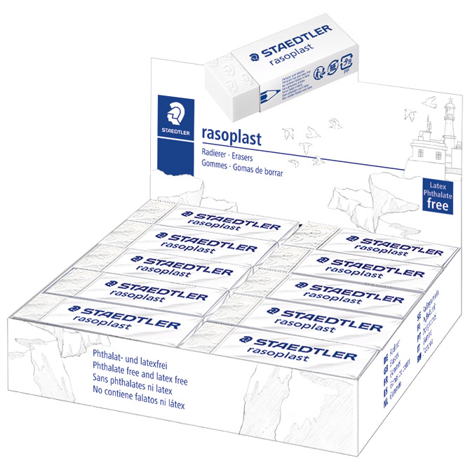 svaka gumica je sa barkodom i omotana u foliju; za grafitnu olovku; s omotom; bez lateksa; visokokvalitetna; iznimno lagano brisanje bez mrvljenja 526 B20 / 65x23x13 mm Pakiranje: 20