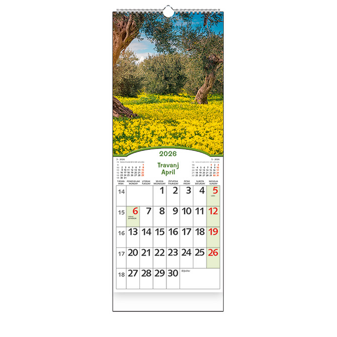 uski okomiti; 13 listova; dimenzija: 16,5×42 cm; pasica za dotisak 7 cm; spirala Pakiranje: 1/50