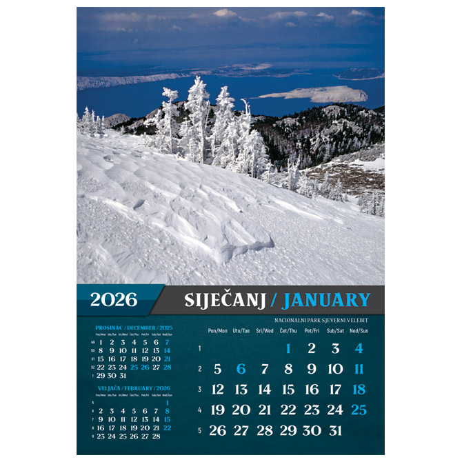 Proizvod: Kalendar “Nacionalni parkovi i Parkovi Prirode 2026” 13 listova, spirala