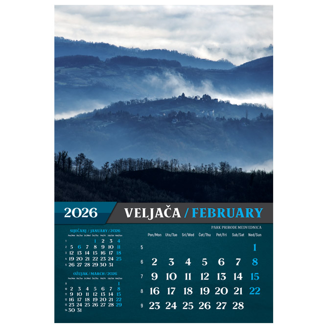 Kalendar “Nacionalni parkovi i Parkovi Prirode 2026” 13 listova, spirala