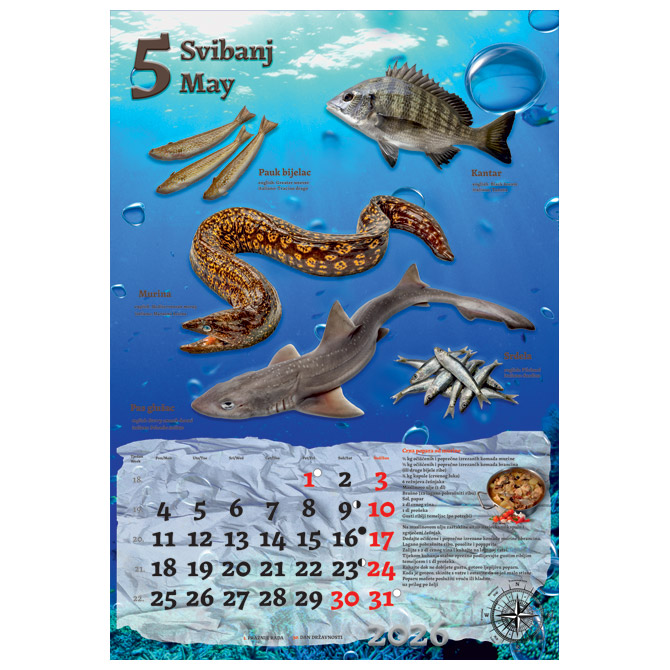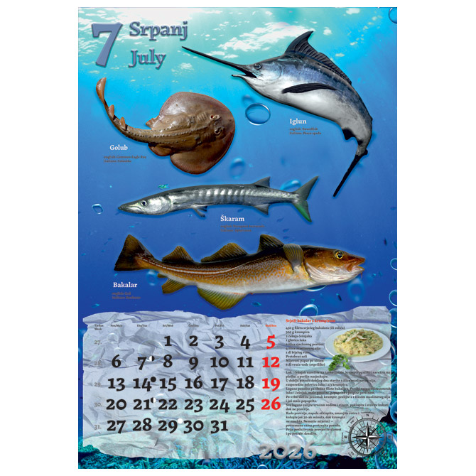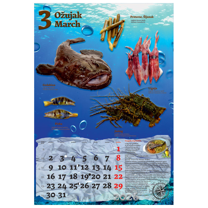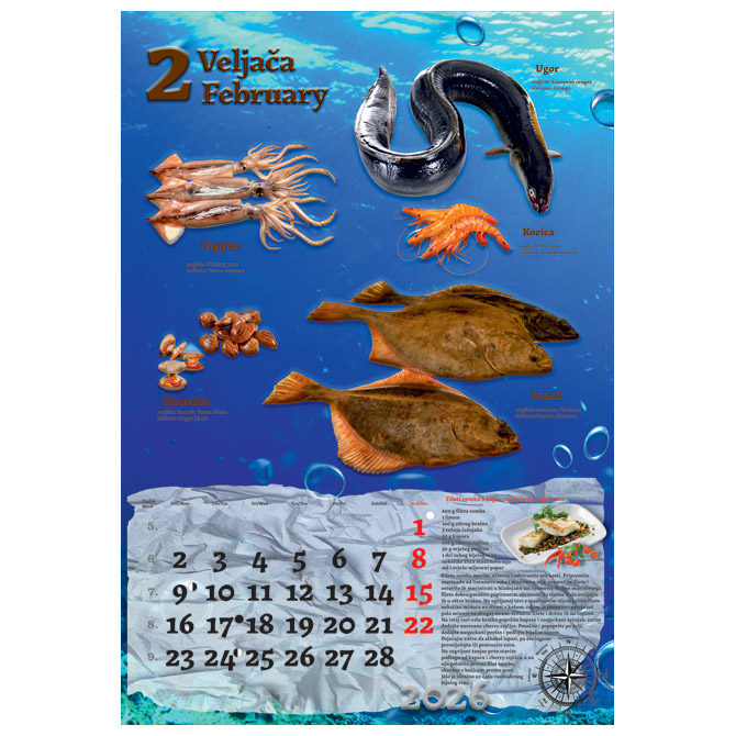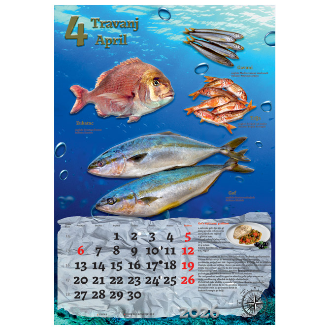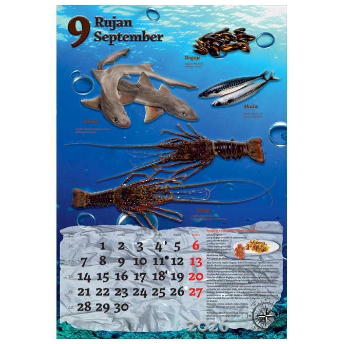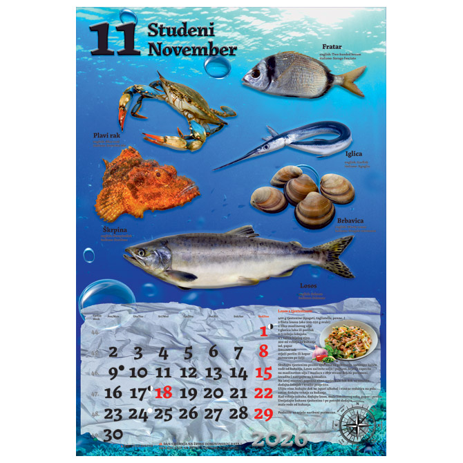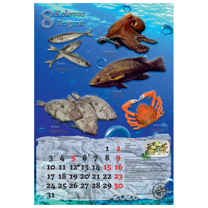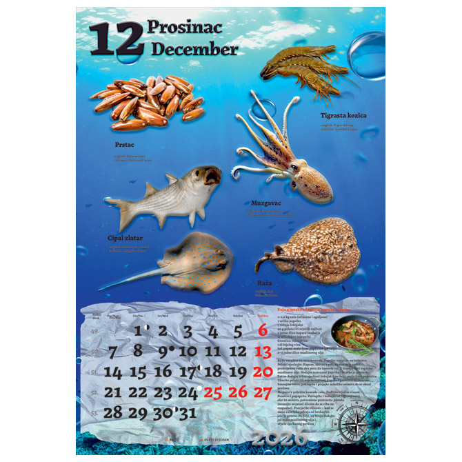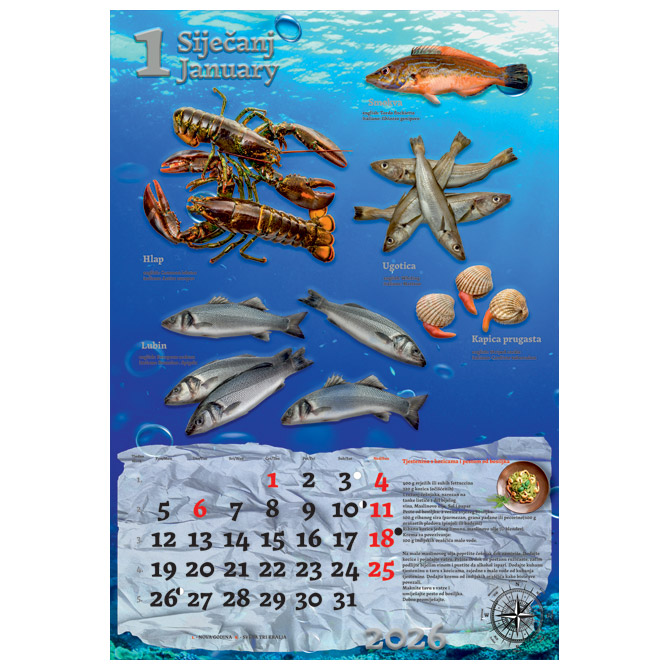 13 listova; dimenzija: 33×48 cm; pasica za dotisak 6 cm; spirala; kalendar s receptima Pakiranje: 1/30