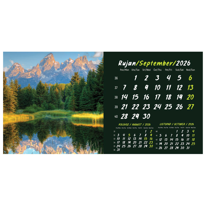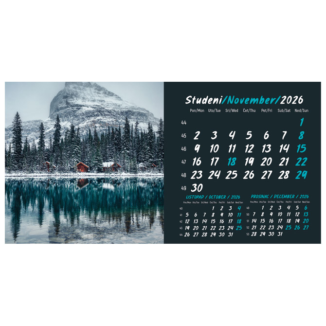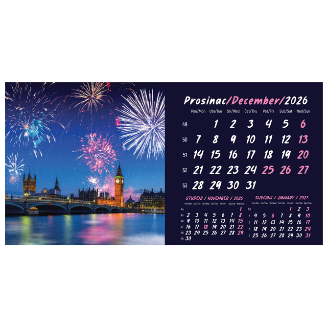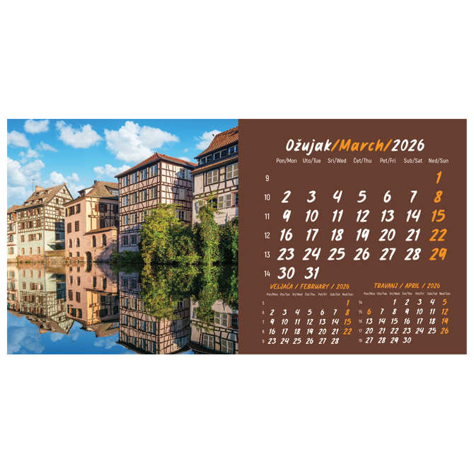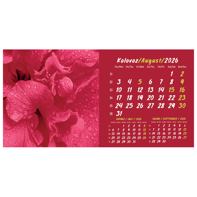 13 listova; dimenzija: 20,5×10,5 cm; pasica za dotisak 3 cm; spirala; s kuvertom Pakiranje: 1/100