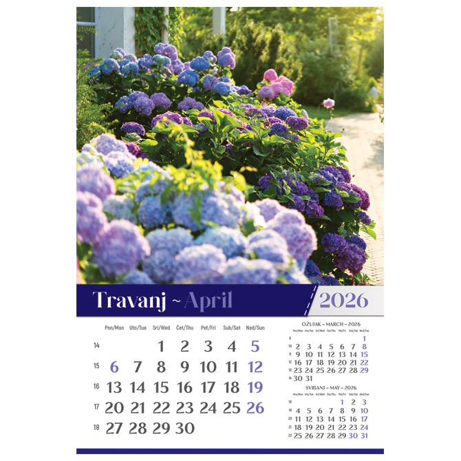 Kalendar “Vrtovi 2026” 13 listova, spirala