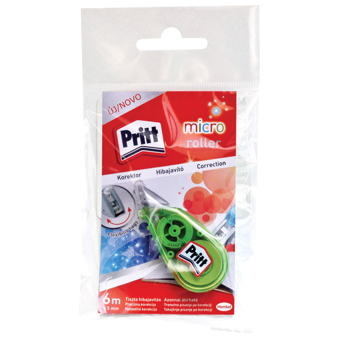 širina trake: 5 mm; duljina trake: 6 m; suho korigiranje – može se odmah pisati preko; ne ostavlja vidljive tragove prilikom fotokopiranja; za jednokratnu upotrebu; boje: plava, roza i zelena; blister Pakiranje: 1/18