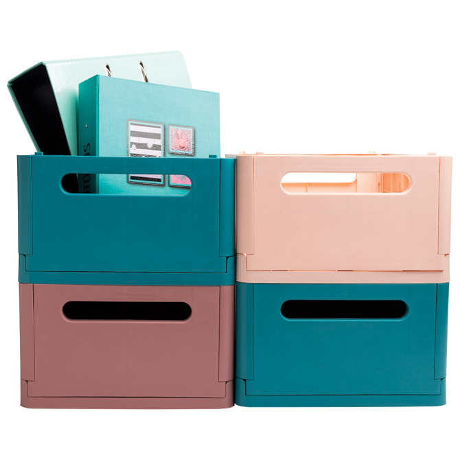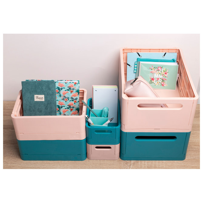 veličina A4+; potpuno sklopiva i mogućnost skladištenja u ravnini; 50 % izrađena od otporne reciklirane plastike iz kućnog otpada i GRS certificirano; za pohranu sitnih i dekorativnih predmeta; odjeće, igračaka ili kuhinjskih potrepština; savršeno se uklapa u vaš ured i služe kao zamjena za mape i ring-mape, A4 dokumente i ostali uredski pribor; kutije se mogu slagati jedna na drugu