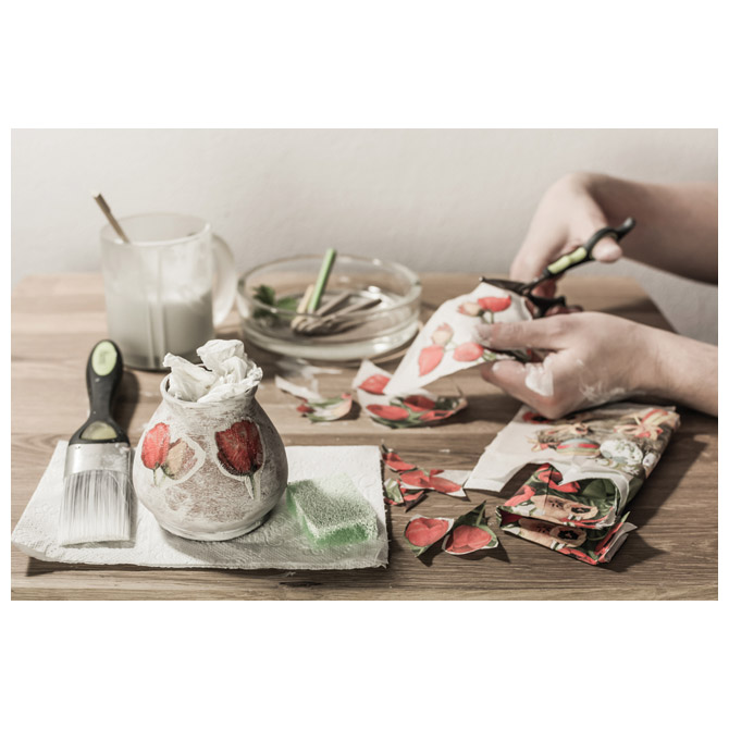 125 ml; na vodenoj bazi; za: papir i izradu dekupaža; savršeno prianja na površine, a zahvaljujući sjaju omogućuje svjetlosne efekte i ima zaštitnu funkciju (djeluje kao ljepilo i lak); spojevi se mogu bojati akrilnim bojama; maksimalno razrjeđivanje s vodom: 1:1; jednom osušen trajan je i ne može se isprati s tekstila i ostalih površina stoga kistove treba očistiti nakon upotrebe i mrlje odmah ukloniti vodom; za savršeni dugotrajni učinak preporučuje se pričekati dok se proizvod potpuno ne osuši Pakiranje: 6