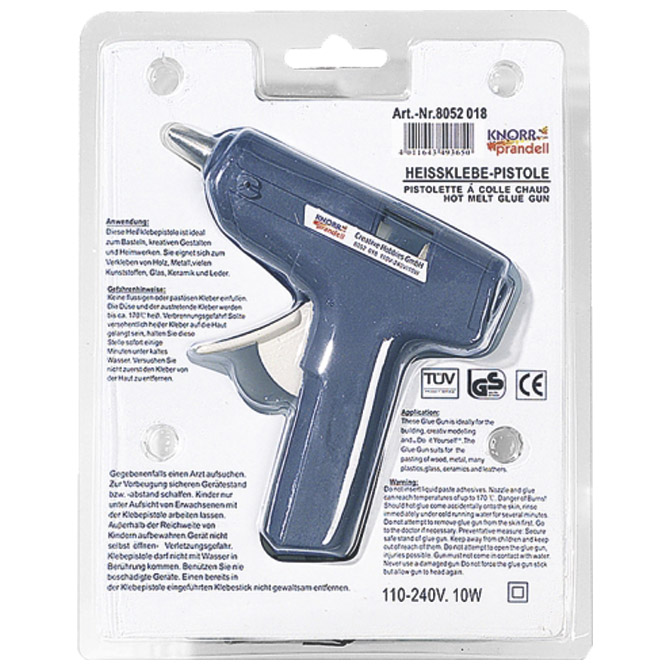za: brze popravke, fiksiranje i dekorativne radove; idealno za: drvo, metal, plastiku, staklo, keramiku, kožu…; rad na temperaturi od 120°C; snaga: 7 W; napon: 230 V; za okrugle patrone fi: 7 mm; sadrži 2 patrone; blister Pakiranje: 1/48