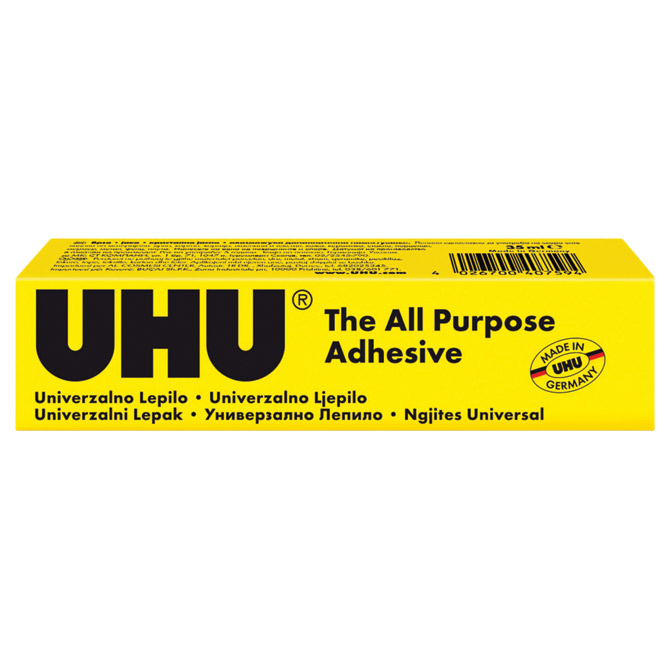 tuba; upotreba brza i trajna; za: drvo, plastiku, metal, staklo, porculan, keramiku, kožu, gumu, filc, tkaninu, karton, papir…; nije pogodno za: Styrofoam® (stiropor), polietilen (PE) i polipropilen (PP); pogodno za: modelarstvo, rukotvorine i druge materijale koji se upotrebljavaju kod kuće, u uredu i školi; na bazi sintetičke smole; nakon nanošenja se može korigirati i ne gužva papir; brzo se suši 35 ml Pakiranje: 10/240