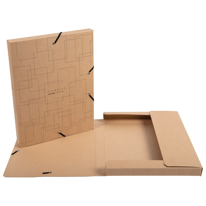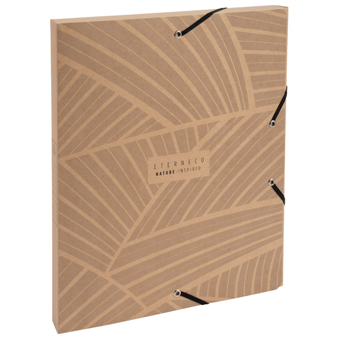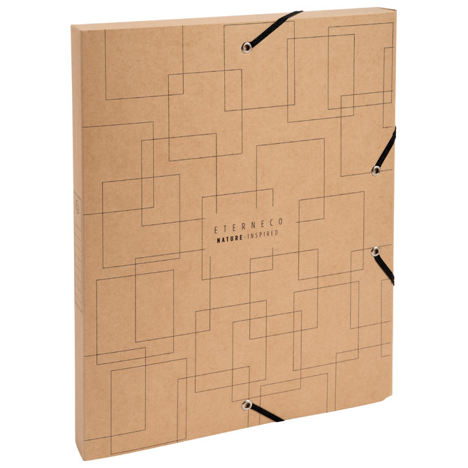 format: A4; dimenzija: 250× 330 mm; karton 600 g/m2; debljina: 0,7 mm; hrbat: 25 mm bez etikete (s otisnutim linijama za lakše označavanje sadržaja); kapacitet: 200 listova; s gumicama i 3 klape; reciklirani karton premazan biljnim uljem što omogućuje učinkovitu zaštitu od vlage i vode; 2 motiva; FSC certifikat Pakiranje: 8