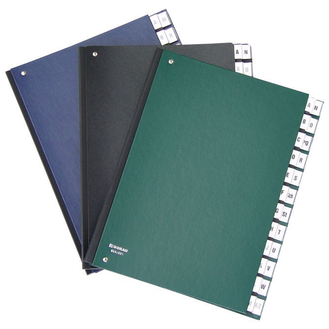 format: A4; dimenzija: 275×343 mm; pregrade su od 450 g/m2 kartona; pomični hrbat A-Z Pakiranje: 5/320