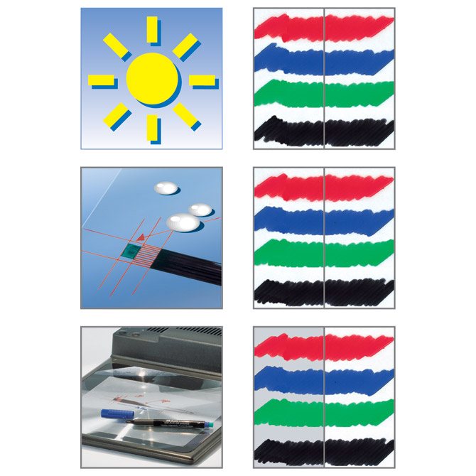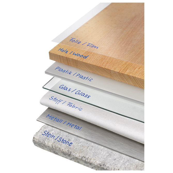 širina ispisa: 0,4 mm (S – Super fine); vodootporan; jako otporan na svjetlo; tinta izvrsno prianja i suši se trenutačno; trajna tinta za gotovo sve glatke površine: staklo, folije, CD-e, DVD-e, plastiku, kamen, drvo, metal; može se brisati s ugrađenom posebnom gumicom; intenzivne boje i jasne linije set od 8 boja: crna, crvena, plava, zelena, narančasta, smeđa, žuta i ljubičasta; u PVC etui-u; blister Pakiranje: 1/5/200