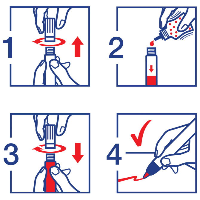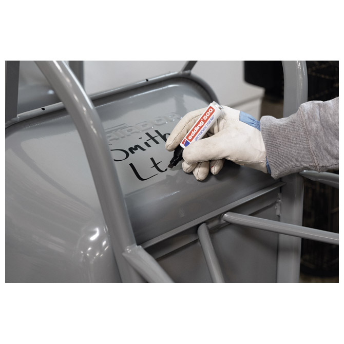 s mogućnošću ponovnog punjenja; klinasti vrh; aluminijsko kućište; širina ispisa 2-7 mm; vodootporan; nakon sušenja otporan na vodu i brisanje; postojan na svjetlu; za pisanje, isticanje i označavanje na svim materijalima (staklo, metal, plastika,… ); visoka otpornost na: svjetlo, brisanje i vrućinu Pakiranje: 10/200