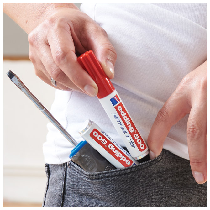 s mogućnošću ponovnog punjenja; klinasti vrh; aluminijsko kućište; širina ispisa 2-7 mm; vodootporan; nakon sušenja otporan na vodu i brisanje; postojan na svjetlu; za pisanje, isticanje i označavanje na svim materijalima (staklo, metal, plastika,… ); visoka otpornost na: svjetlo, brisanje i vrućinu Pakiranje: 10/200
