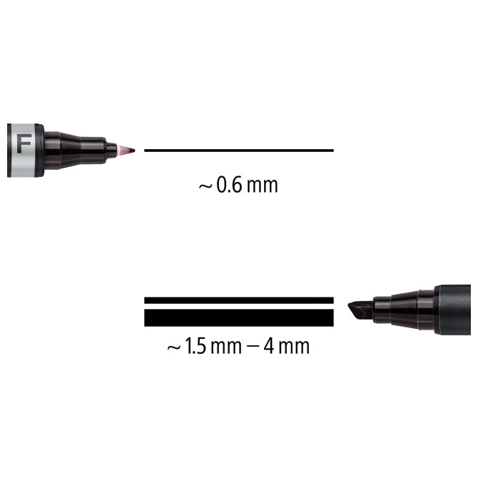 širina ispisa: 0,6 mm (F) i 1,5 mm (M);