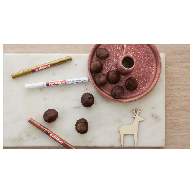 permanentni; lakirajući; sjajni; okrugli vrh; aluminijsko kućište; širina ispisa 0,8 mm; visoka neprozirnost; ne ostavlja mrlje; za pisanje i dekoriranje na glatkim, tamnim i prozirnim materijalima (npr: staklu, metalu, plastici, papiru s premazom…); brzo se suši; dobro podnosi atmosferske utjecaje; otporan na trošenje (habanje); tinta nema intenzivan miris Pakiranje: 10/100/600