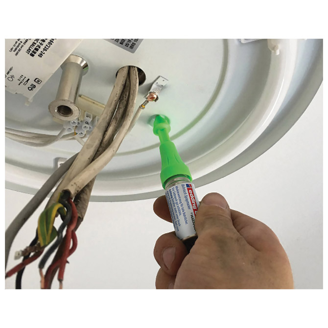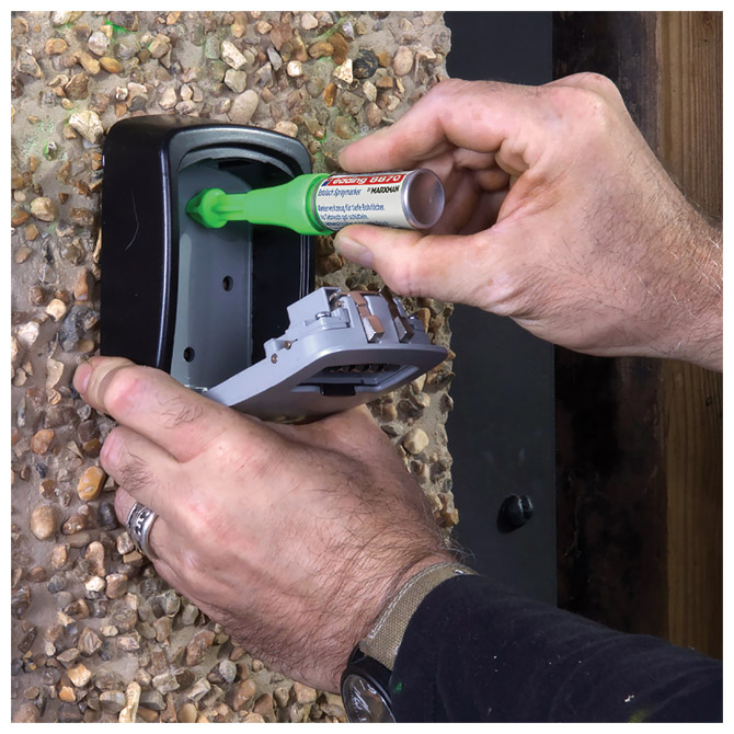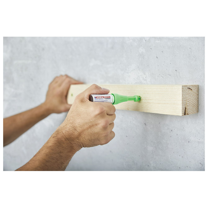 individulno oblikovana mlaznica kredastog spreja omogućava privremeno označavanje kroz rupe za bušenje dubine do 50 mm i promjera od 3-13 mm; s gumbom za pritiskivanje; za teško dostupna mjesta; koristi se iz bilo kojeg kuta i visine, čak i iznad glave jednom rukom; lako se može obrisat; ne ostavlja tragove; blagog mirisa; intenzivna i privlačna boja koja je vidljiva na gotovo svim površinama; za duboke rupe prije upotrebe protresti; blister Pakiranje: 1/8/64