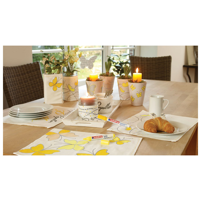 permanentni, pigmentni marker za majice (pamuk, svila, lan… ); okrugli vrh; širina ispisa 2-3 mm; vodootporan; otporan na svjetlo; za fiksiranje glačati vrućom peglom bez pare; nakon fiksiranja otporan na pranje do 60° C; brzo se suši Pakiranje: 10/400