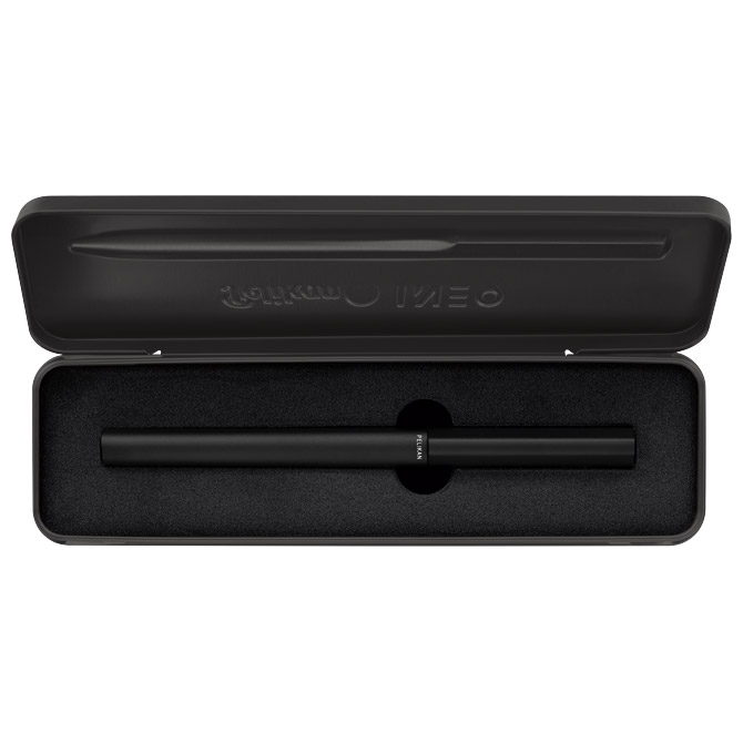 izrađena od aluminija, mat anodizirani gornji i donji dio tijela, bez klipse; pero od nehrđajućeg čelika; debljina pera M (medium); dobije se standardna plava patrona velikog kapaciteta (4001 Royal blue); patrone duge 310748 plava/patrone duge 310615 crna; u metalnoj poklon kutiji Pakiranje: 1/5/120